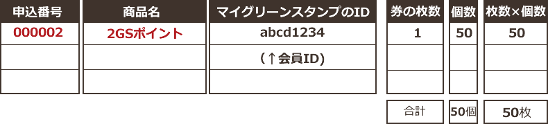 例)グリーンスタンプを50枚移行する場合
